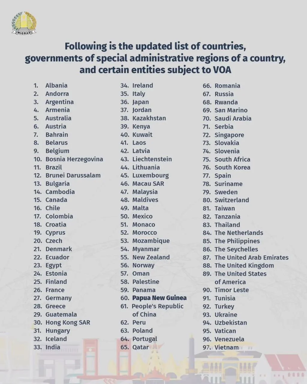The list of countries eligible for Visa on Arrival includes several key markets for Indonesian tourism, reflecting the government’s strategy to attract visitors from around the globe.